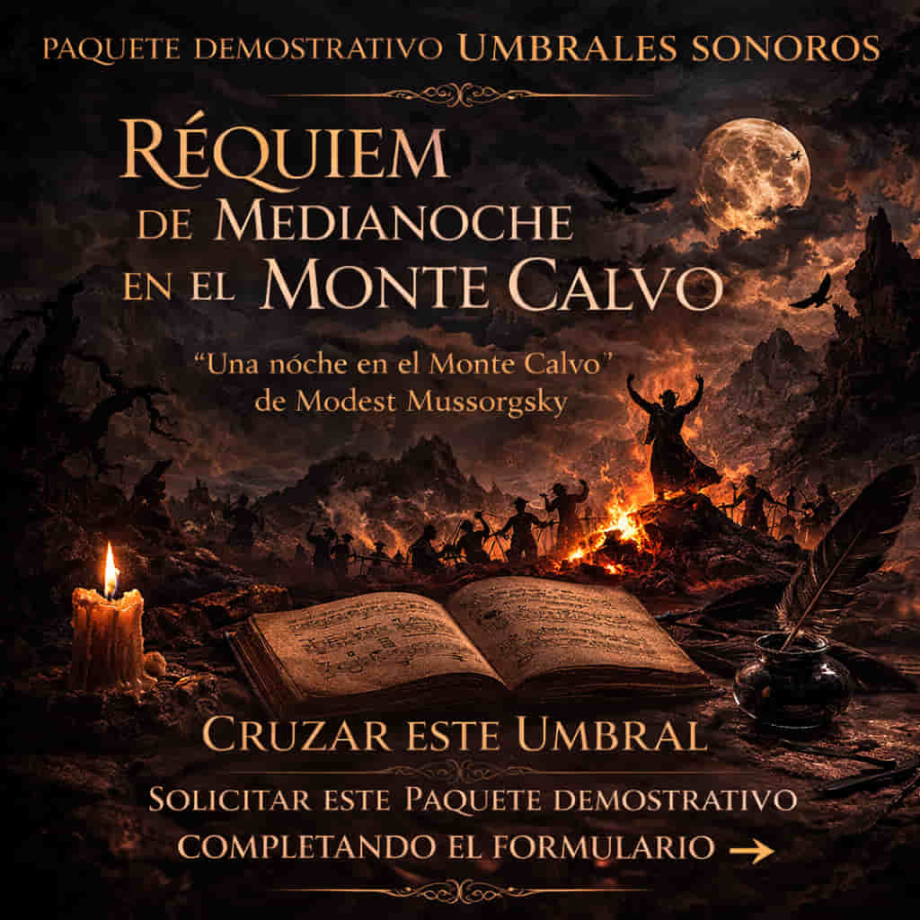 Algunas obras se ofrecen como referencia del formato y pueden solicitarse sin costo mediante el formulario. Estos paquetes permiten conocer el alcance completo del proyecto y su aplicación en comunicación cultural asociada a conciertos sinfónicos.